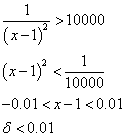 M=100000に対しては、0.001より小さな数をδとして選べばよい。すなわち、このMに対しても、ちゃんとδが「存在」している。