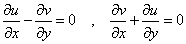 - [定理]:関数f(z)=u(x,y)+iv(x,y)が正則であれば、u,vは連続な偏導関数をもち、次の「コーシー・リーマンの微分方程式」を満たす。逆も成り立つ。