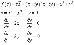 「逆」は、私には証明できないから省略して(笑)、その「逆」を用いて、ある複素関数が「正則」であるか否かの判定ができる例を、二つほど示す。
